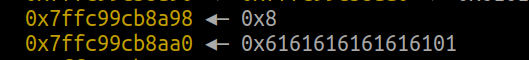 1 2 3 4 5 6 7 8 9 10 11 12 13 14 15 16 17 18 19 20 21 22 23 24 25 26 27 28 29 30 31 std::string_view CreateAndReturnPointer() { std::string res; getline(std::cin,res); std::string_view strView(res); return strView; }int main() { std::string_view view = CreateAndReturnPointer(); std::string res; getline(std::cin,res); std::cout << "now the content of string_view is :" << view.substr(0 ,8 ) << std::endl; return 0 ; }from pwn import * p = process('./test' ) p.sendline(b'a' *0x80 ) sleep(0.1 ) p.sendline(b'b' *0x80 ) p.interactive()